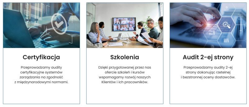 Uzupełnieniem oferty są szkolenia ISO, wspierające rozwój kompetencji pracowników oraz pełnomocników systemów zarządzania. ICA-CERT wyróżnia czytelne zasady współpracy, elastyczne podejście i duża dbałość o jakość komunikacji na każdym etapie procesu.