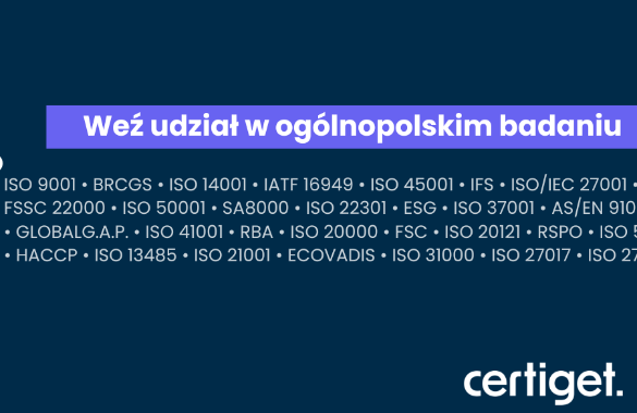 Certiget rozpoczął badanie rynku pracy w branży jakości, bezpieczeństwa i systemów zarządzania. Weź udział i pomóż współtworzyć raport o realiach pracy z normami ISO, BRCGS, IFS, ESG i TISAX w Polsce.